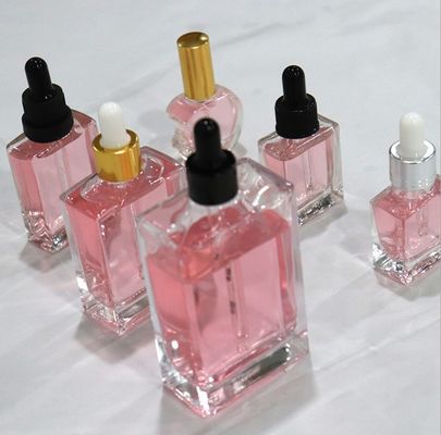 بسته بندی شیشه ای آرایشی و بهداشتی شفاف 50 میلی لیتری قطره چکان مربع شکل بطری های شیشه ای ذخیره سازی