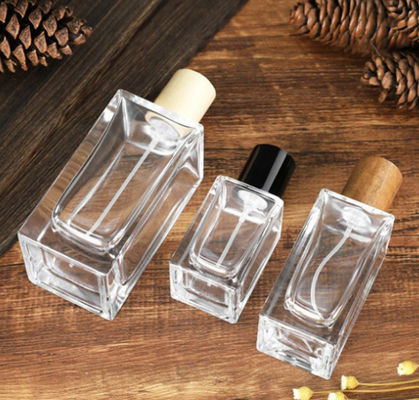 ظروف آرایشی و بهداشتی شیشه ای درب چوبی با کیفیت بالا بطری های شیشه ای کریستالی عطر