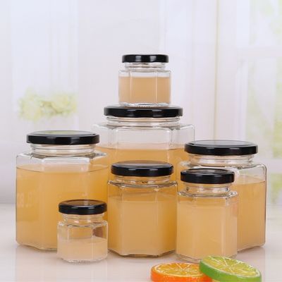 فروش عمده شش گوش قوطی چند ضلعی مربای فلفل دلمه ای سس ترشی آجیل شیشه ای نگهداری بطری های شیشه ای با درب