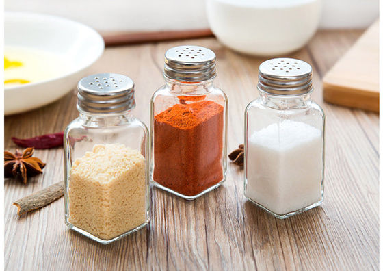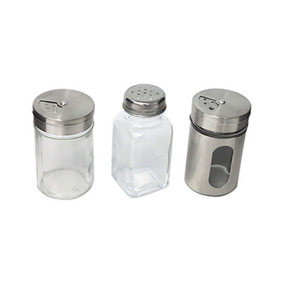 | بطری های شیشه ای شفاف شیشه فلفل نمک ادویه با لبه های فلزی | |||